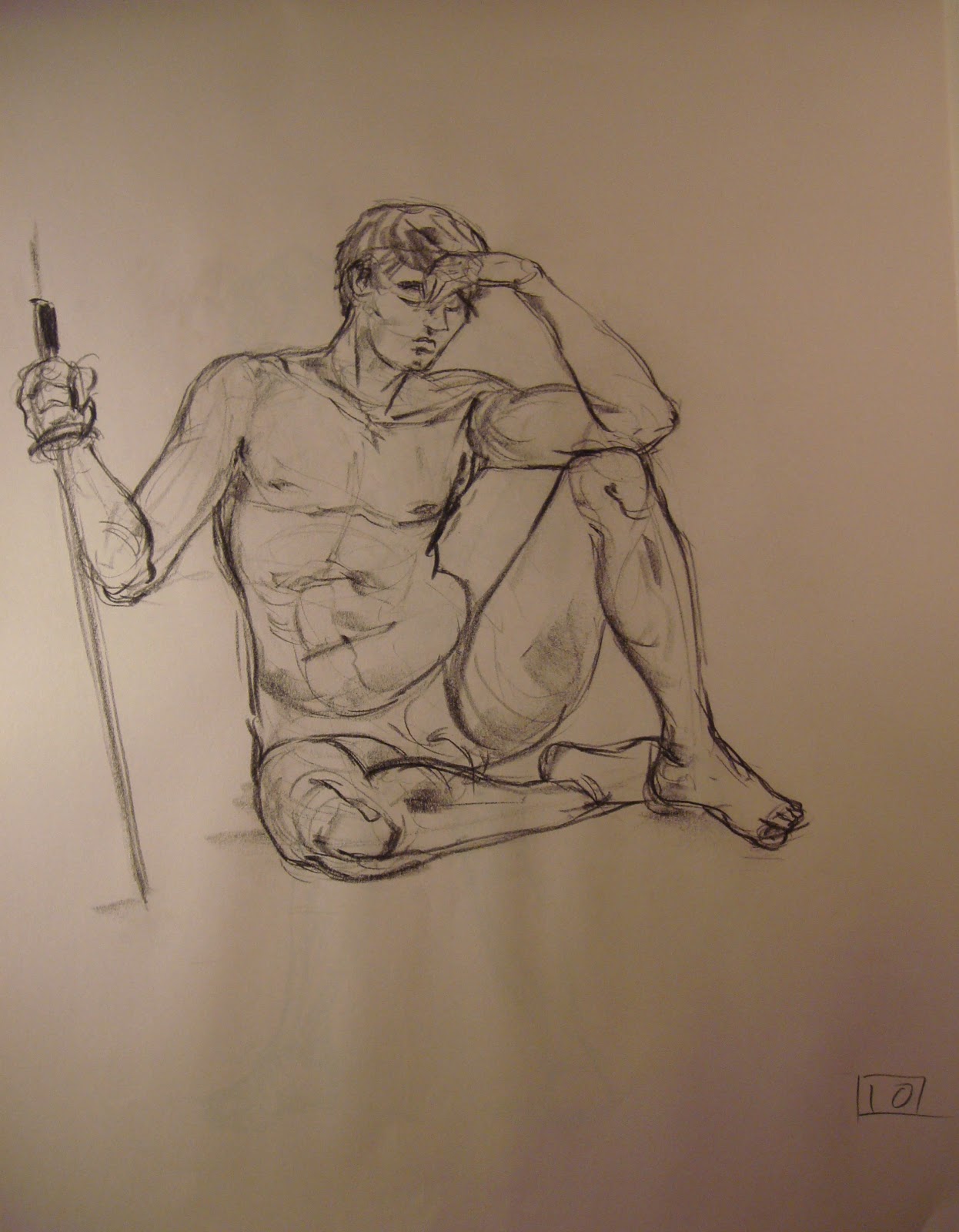 This one came out pretty well. Alright hands, feet, and face. Not bad not bad. Seated poses can be interesting because you can draw at a larger scale than a standing pose and still fit everything in.
